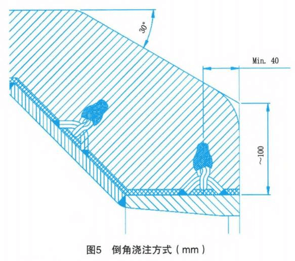 (2)燃烧器头部浇注料形状采用倒角